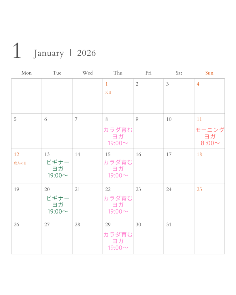 1月のヨガグループレッスンスケジュール